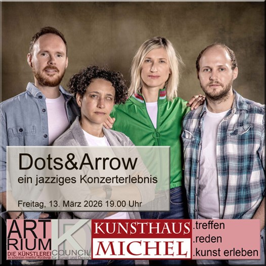 Das Quartett Dots&Arrow verbindet eine lange Freundschaft. Zum ersten Mal stehen die vier Musiker:innen aus Würzburg, Nürnberg und Leipzig gemeinsam auf der Bühne.